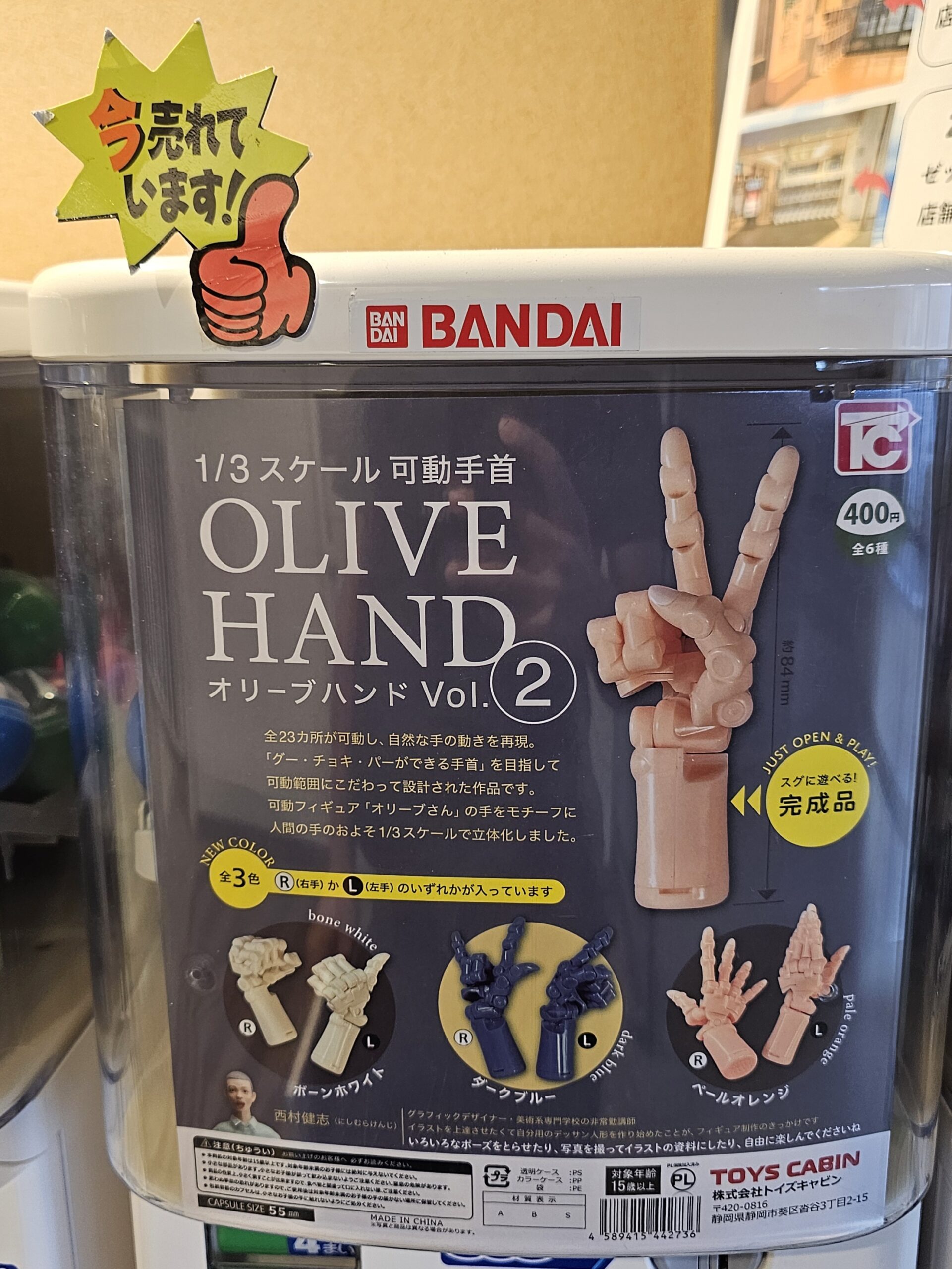 この写真の「OLIVE HAND」は1/3スケールで23か所も関節が可動する精巧な手首モデル。骨のような「ボーンホワイト」や機械的な「ネイビーブルー」、そして肌色に近い「ペールオレンジ」などカラーバリエーションも豊富です。